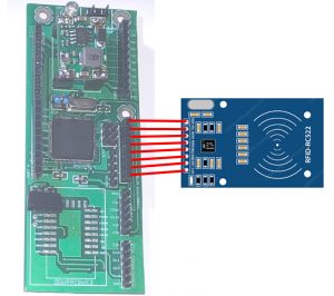 Modul ini berfungsi sebagai RFID Reader yang didisain menggunakan IC MFRC522 yaitu sebuah IC RFID Writer/Reader dengan frekwensi 13.56 MHz yang support ISO/IEC 14443 A/MIFARE and NTAG