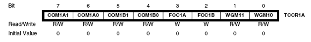 TCCR1A=(1<<COM1A1)|(0<<COM1A0)|(0<<COM1B1)|(0<<COM1B0)|(1<<WGM11)|(1<<WGM10);