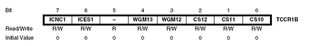 TCCR1B=(1<<ICNC1) |(0<<ICES1) |(0<<WGM13) |(0<<WGM12) |(1<<CS12) |(0<<CS11) | (0<<CS10);