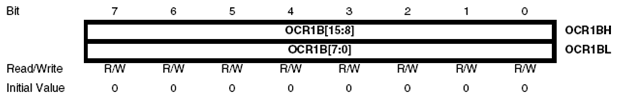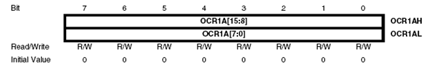 Penulisan data pada OCR1x dilakukan dengan diawali oleh high byte terlebih dahulu dan dilanjutkan dengan low byte.