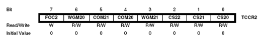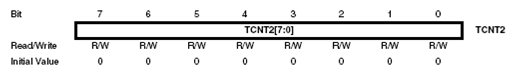 Register ini dapat dibaca tulis secara langsung, penulisan data pada register ini akan mencegah nilai counter mencapai output match dengan OCR2. Oleh karena itu penulisan data pada register ini pada saat counter sedang berjalan mempunyai resiko adanya kehilangan kondisi output compare match.