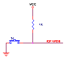 Hubungkan saklar push on dan resistor pull up seperti pada gambar berikut pada ICP1/PD6 dan pasang 8 bit LED Logic Tester pada Port B. Tekan saklar tersebut dan nilai pada 8 bit LED Logic Tester akan bertambah. Karena penekanan mekanik menimbulkan bouncing maka counter akan terlihat melompat.