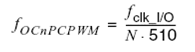 Frekwensi yang dihasilkan PWM dapat dihitung dengan persamaan berikut