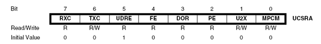 Bit ini akan set pada saat ada data yang belum terbaca dan akan clear saat data telah terbaca. Bit ini juga akan clear apabila RXEN (RX Enable) dimatikan. Bit ini juga dapat membangkitkan Receive Complete Interrupt