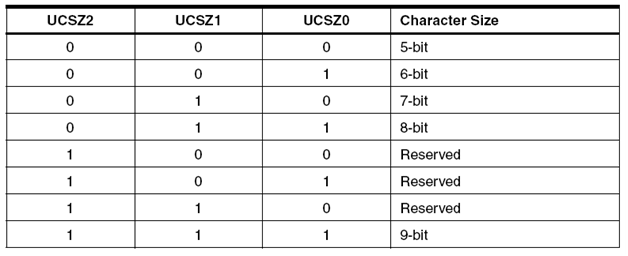 Bit 2:1 – UCSZ1:0 Character Size