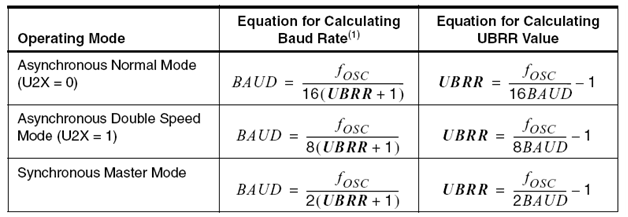 Baud = fosc / (8 * (UBRR+1))