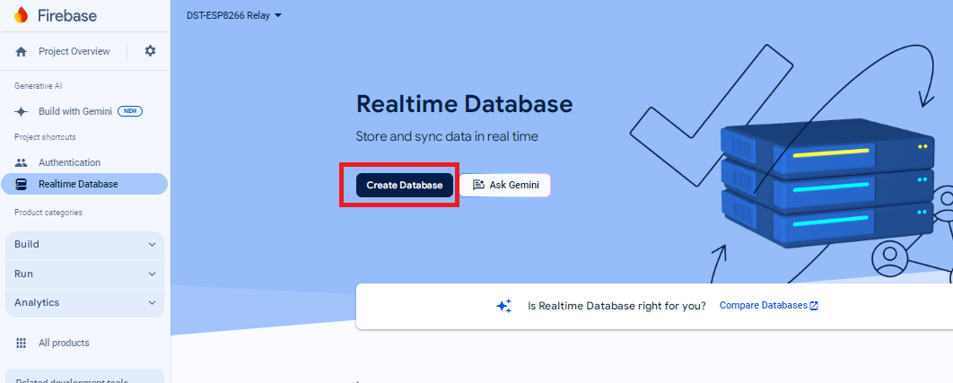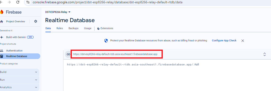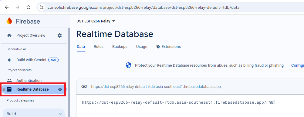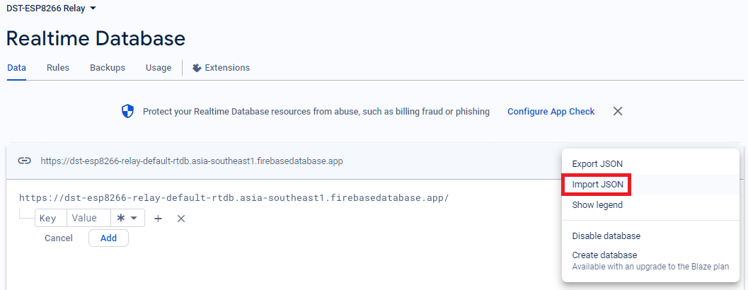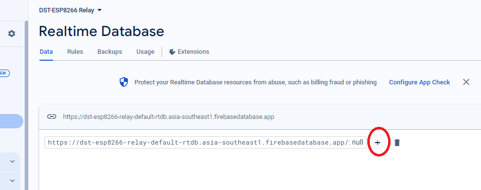 Anda dapat membuat Node Database ini dengan cara manual di console Firebase, menggunakan Web App atau dapat juga dari DST-ESP8266. Namun kali ini akan saya bahas yang cara manual