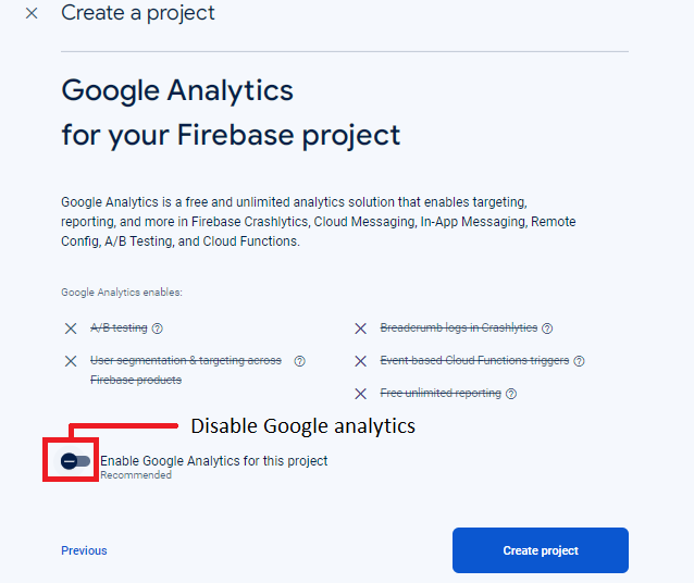 - Disable Google analytics karena fungsi ini tidak kita perlukan