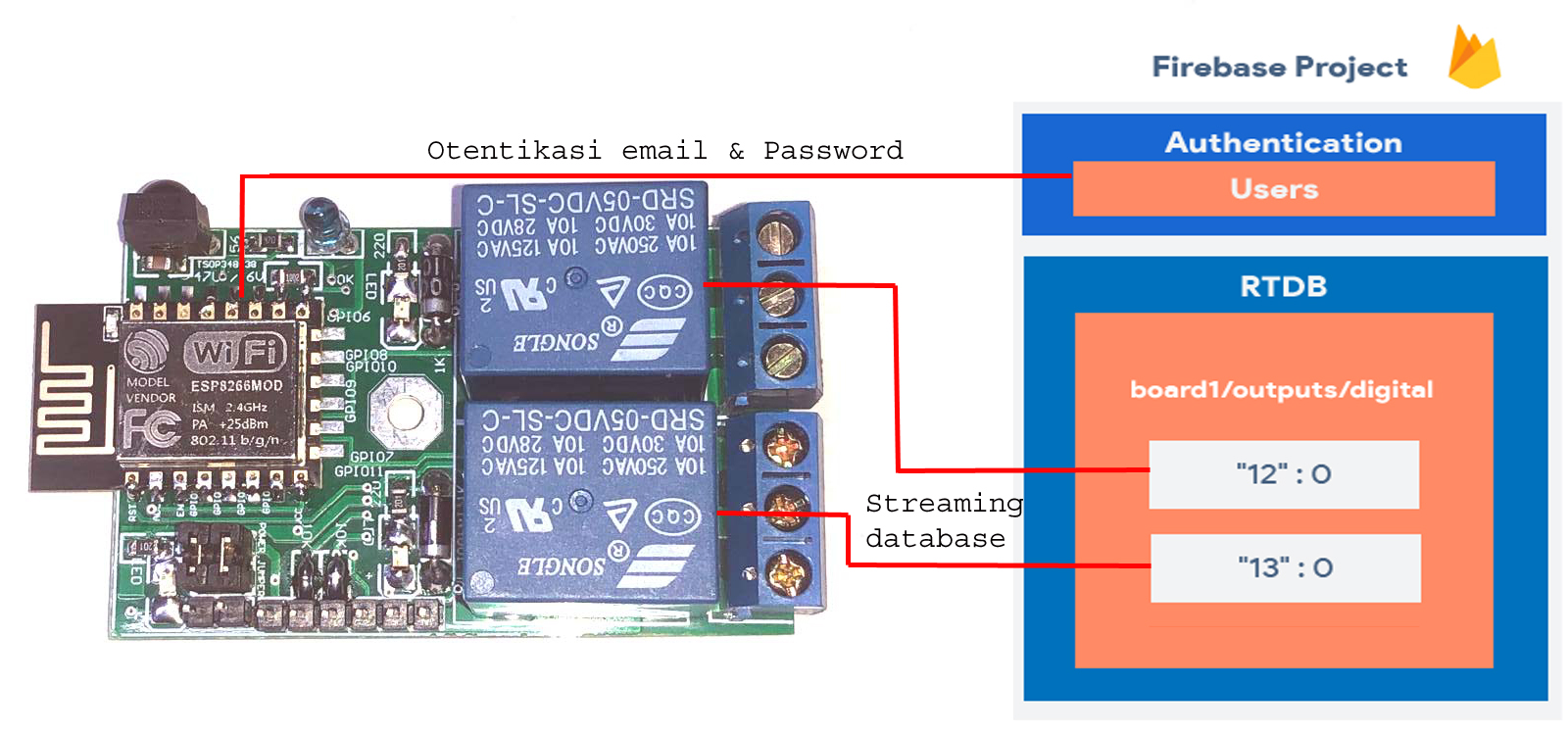 Artikel ini saya tulis dengan menggunakan sumber dari https://randomnerdtutorials.com/firebase-control-esp8266-nodemcu-gpios/ dengan gaya bahasa dan konstruksi hardware yang saya sesuaikan dengan produk kami.