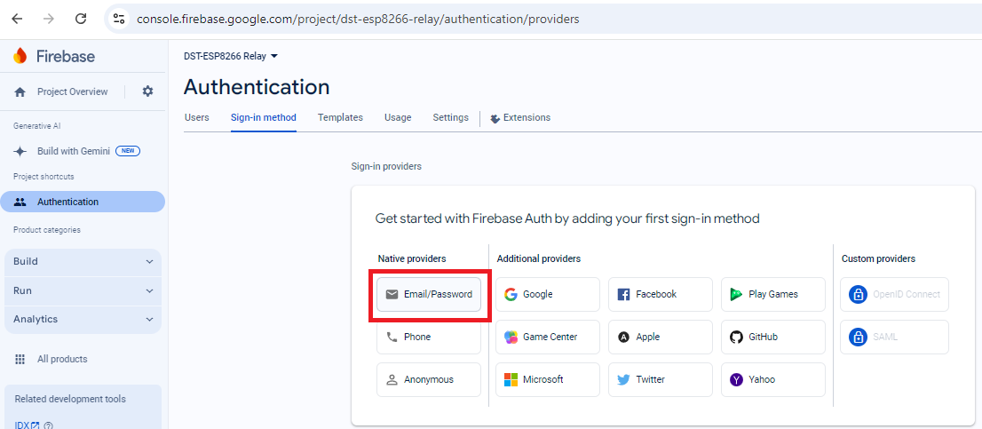 - Set metode otentikasi, untuk keamanan data yang ada di project yang sedang dibuat ini anda dibutuhkan proses otentikasi yang metodenya perlu diatur terlebih dahulu pada langkah-langkah berikut