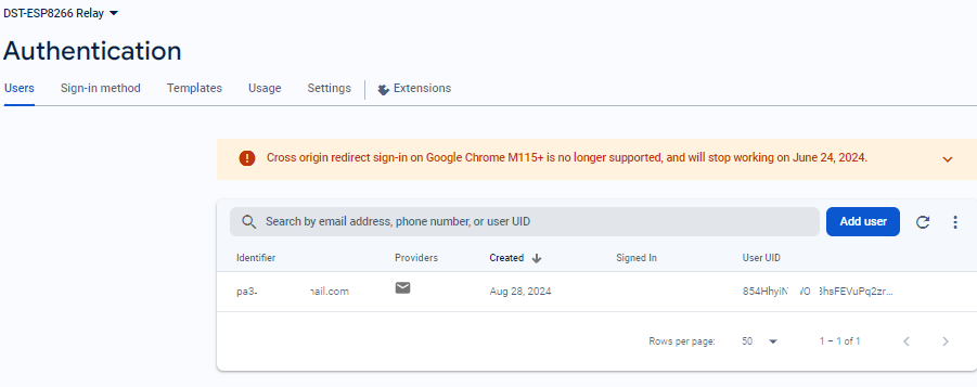 - Di sini UID user telah terbentuk dan dapat digunakan sebagai otentikasi untuk mengakses project ini. Juga terdapat kolom yang menampilkan kapan terakhir user melakukan sign in