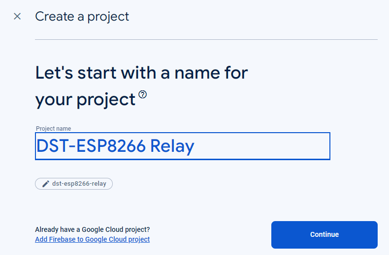- Beri nama untuk Project yang baru tersebut, contohnya: DST-ESP8266 Relay