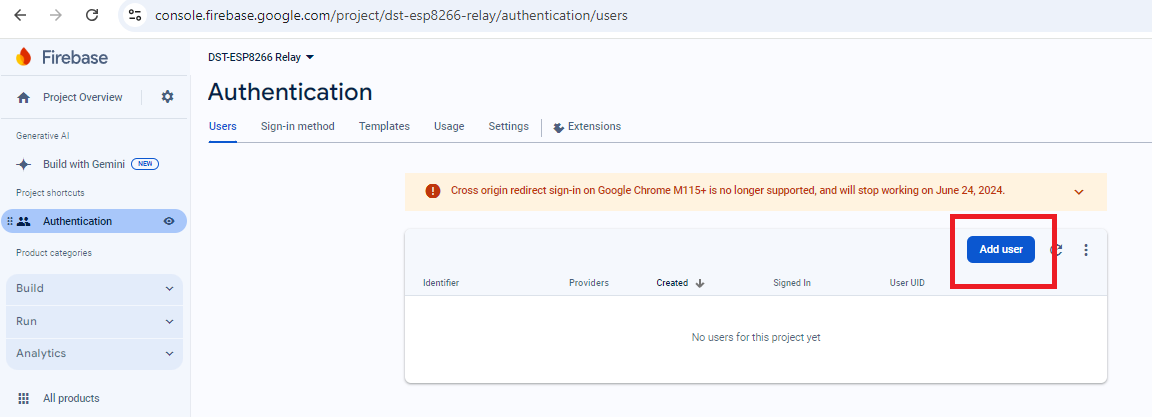- Kemudian klik bagian Authentication lalu pilih Add User