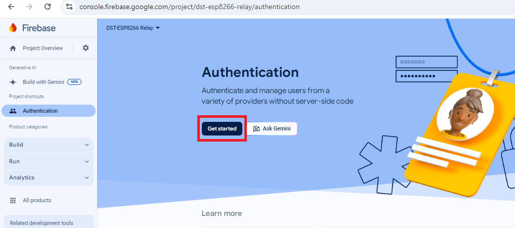 - Klik Authentication pada bilah samping di sebelah kiri dan klik Get Started