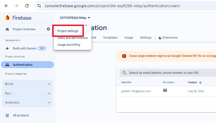 - DST-ESP8266 melakukan otorisasi username dan password dengan menggunakan email untuk mengakses real time database