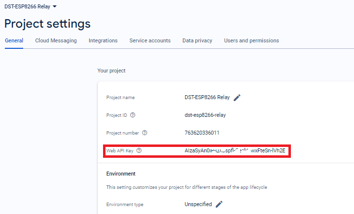 - Copy Web API Key dan simpan di teks file karena nanti akan dibutuhkan