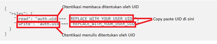 - Sesudah tahap ini, hanya pengguna yang memiliki UID tersebut yang dapat membaca dan menulis pada Realtime Database yang ada di project ini