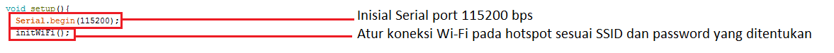 - Selanjutnya kita masuk di bagian Setup yang merupakan proses yang pertama kali dijalankan saat DST-ESP8266 pertama kali reset.