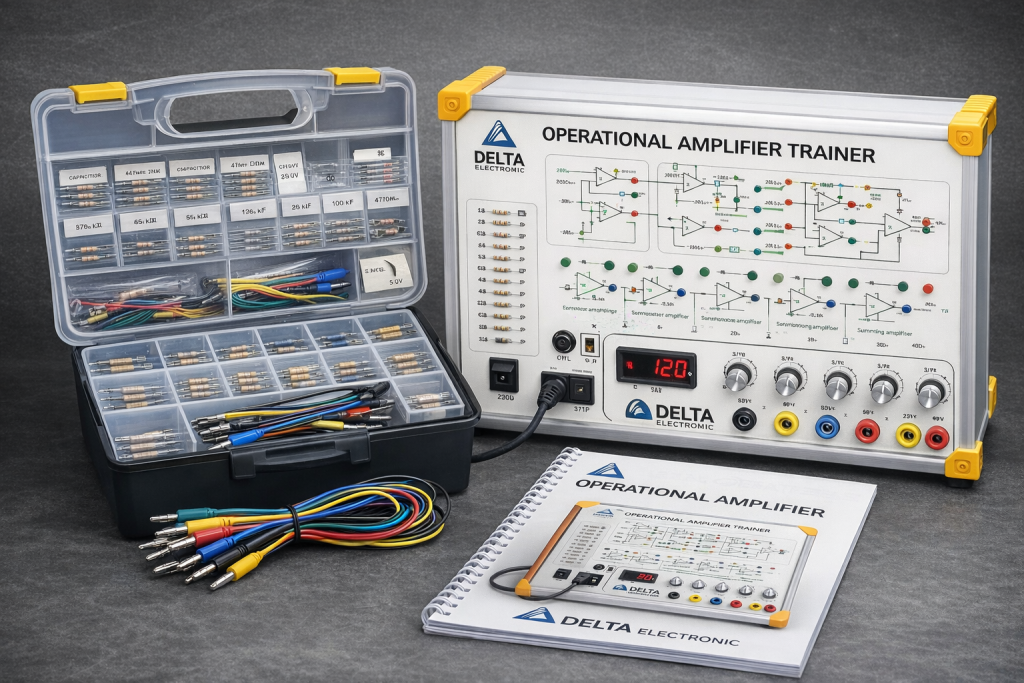 Dengan desain modular dan koneksi eksperimen yang mudah digunakan, Operational Amplifier Trainer sangat cocok digunakan untuk praktikum laboratorium elektronika analog, sistem instrumentasi, serta pengembangan pemahaman rangkaian penguat dalam pendidikan teknik.